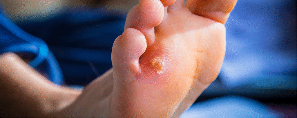 Sie sind nicht ansteckend und gelten als harmlos, können aber im Alltag – insbesondere beim Gehen – störend und schmerzhaft sein.