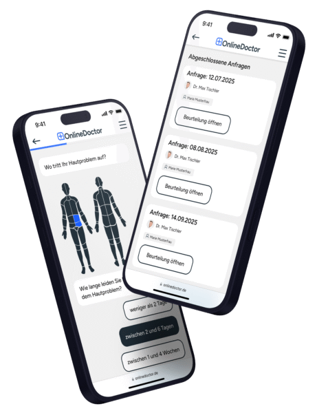 Arztbesuche sind oft verbunden mit langen Wartezeiten oder weiten Anfahrtswegen. Bei OnlineDoctor erhalten Sie innerhalb weniger Stunden eine fachärztliche Diagnose und Handlungsempfehlung von einem Hautarzt oder einer Hautärztin Ihrer Wahl: Einfach Krankenkasse auswählen, Hautärzt*in aussuchen, Fotos hochladen und zurücklehnen.
