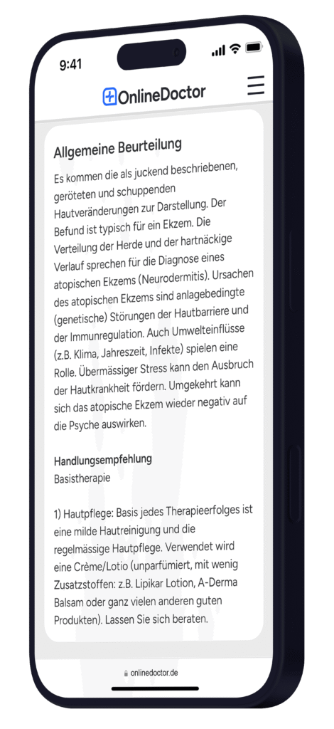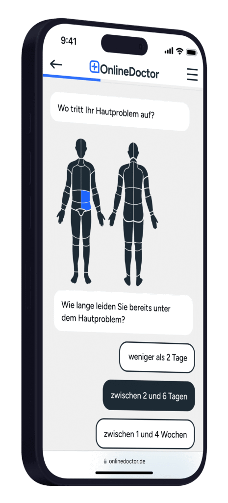Arztbesuche sind oft verbunden mit langen Wartezeiten oder weiten Anfahrtswegen. Bei OnlineDoctor erhalten Sie innerhalb weniger Stunden eine fachärztliche Diagnose und Handlungsempfehlung von einem Hautarzt oder einer Hautärztin Ihrer Wahl: Einfach Krankenkasse auswählen, Hautärzt*in aussuchen, Fotos hochladen und zurücklehnen.